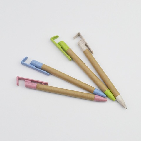 リサイクル紙スポーツボールペン小麦ストロー携帯電話ホルダースタンドカスタマイズロゴOEMプロモーションペン