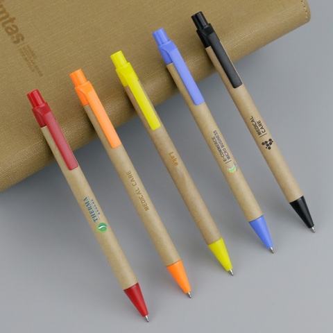 カスタムロゴマルチカラー生分解性環境に優しいボールペン1.0mm書き込み幅リサイクルクラフト紙ロゴ付き